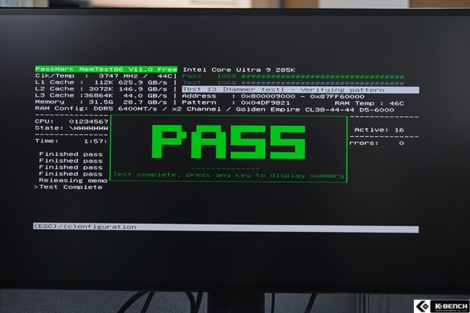 여기에 1.4V 환경에서 DDR5-6400 CL36까지 오버클럭이 가능하고, Memtest86+ 안정성 검증까지 통과한 점은 이 제품의 품질과 여유 있는 설계를 보여준다. 발열 제어도 우수해 장시간 구동 중에도 안정성이 유지된다.