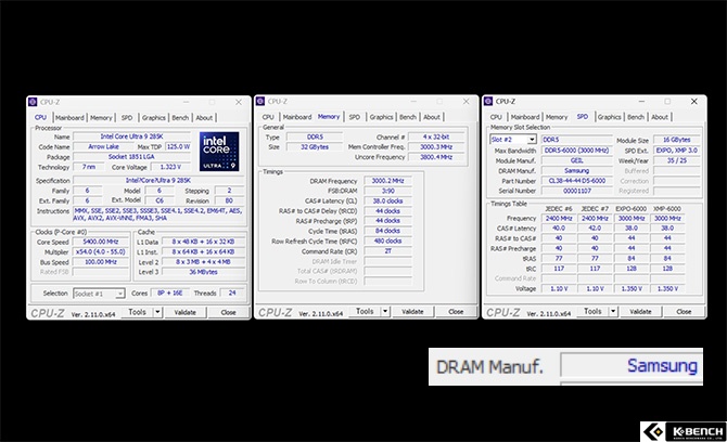 이 모델에는 삼성 메모리 칩이 사용되었다. 일반적으로 고성능 오버클럭 메모리에는 SK하이닉스 칩이 주로 사용되지만, 6000MHz CL38 정도의 중간급 사양에서는 삼성 칩 역시 충분한 안정성과 효율을 보여준다. 발열이 낮고 전력 효율이 높아 장시간 구동 시에도 일정한 성능을 유지할 수 있으며, 가격 면에서도 하이닉스 기반 고타이밍 모델보다 부담이 적어 합리적인 선택이라 할 수 있다.