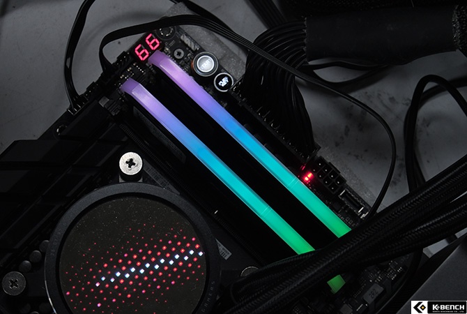 라이트바는 메모리 모듈 전체를 하나의 직선으로 연결하는 디자인으로, 빛이 상단에서 균일하게 흘러나오도록 설계되어 있다. 덕분에 각도에 따라 밝기가 달라지거나 특정 영역이 과도하게 빛나는 현상이 거의 없으며, 측면에서도 자연스럽게 확산된 조명이 은은하게 퍼진다.