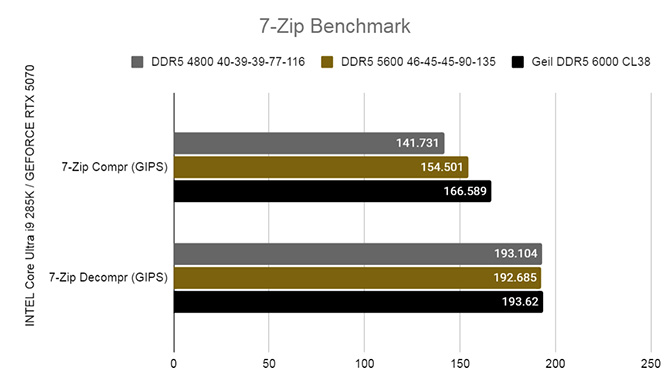 응용 성능에서도 동일한 경향이 이어진다. 7-Zip 압축 테스트에서는 DDR5-5600 대비 약 8% 높은 처리량을 기록했으며, Geekbench 6.3 기준으로도 멀티코어 점수가 평균 3~5% 상승했다. 단순 수치만 보면 소폭의 차이지만, 가격이 사실상 동일한 점을 고려하면 가격 대비 성능 비율은 표준 메모리를 능가한다.