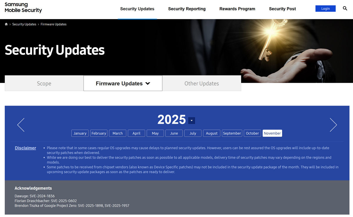 삼성이 곧 배포될 2025년 11월 보안 패치의 세부 정보를 공개했다.