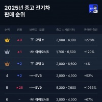 중고차 플랫폼 첫차, 2025년 중고 전기차 판매 순위 발표