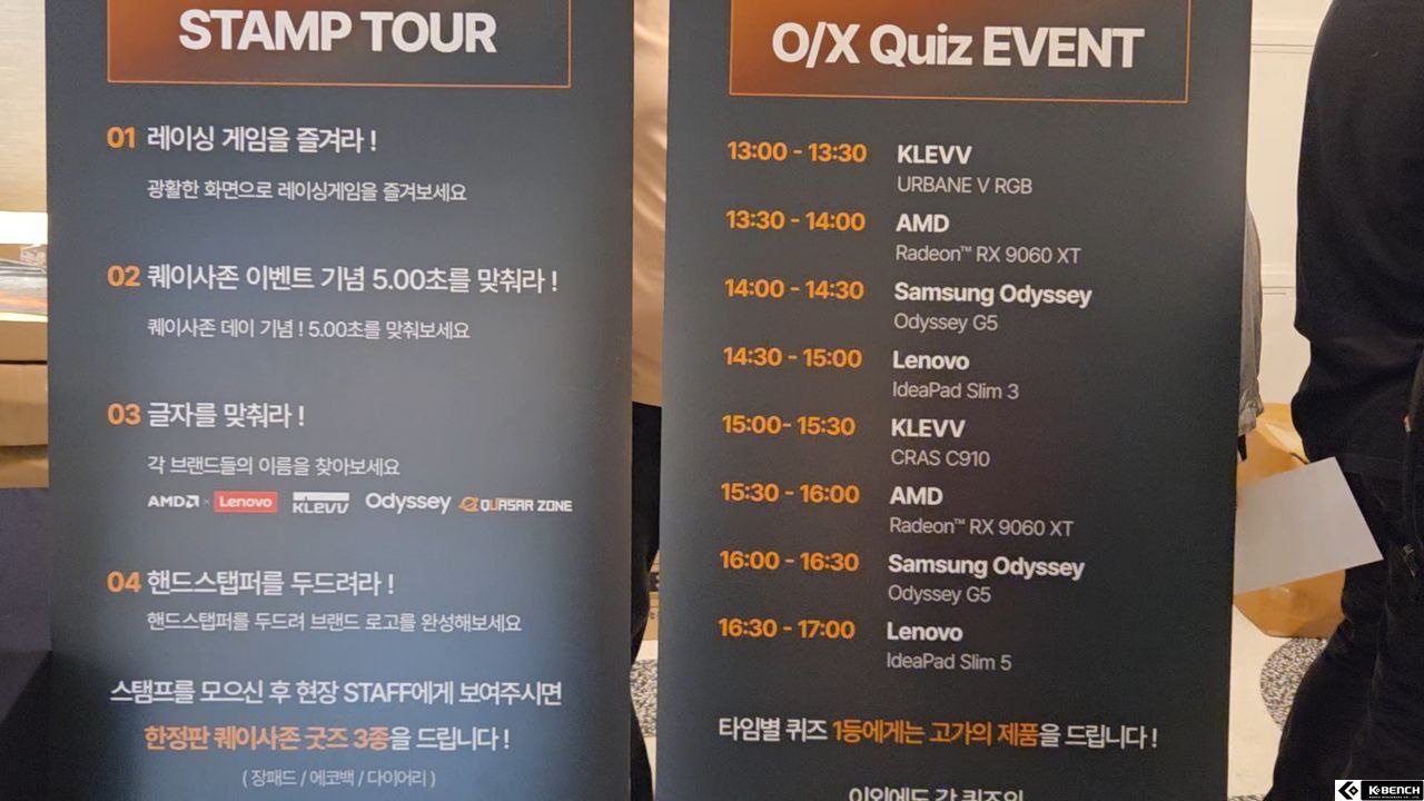 특히나, 이번 행사의 파트너사로 AMDx레노버가 메인 파트너로서 참여하면서, 클레브, 삼성 오디세이 총 4개 브랜드가 다양한 자사 제품들을 전시하고 직접 살펴볼 수 있는 공간과 체험 이벤트를 준비했다.