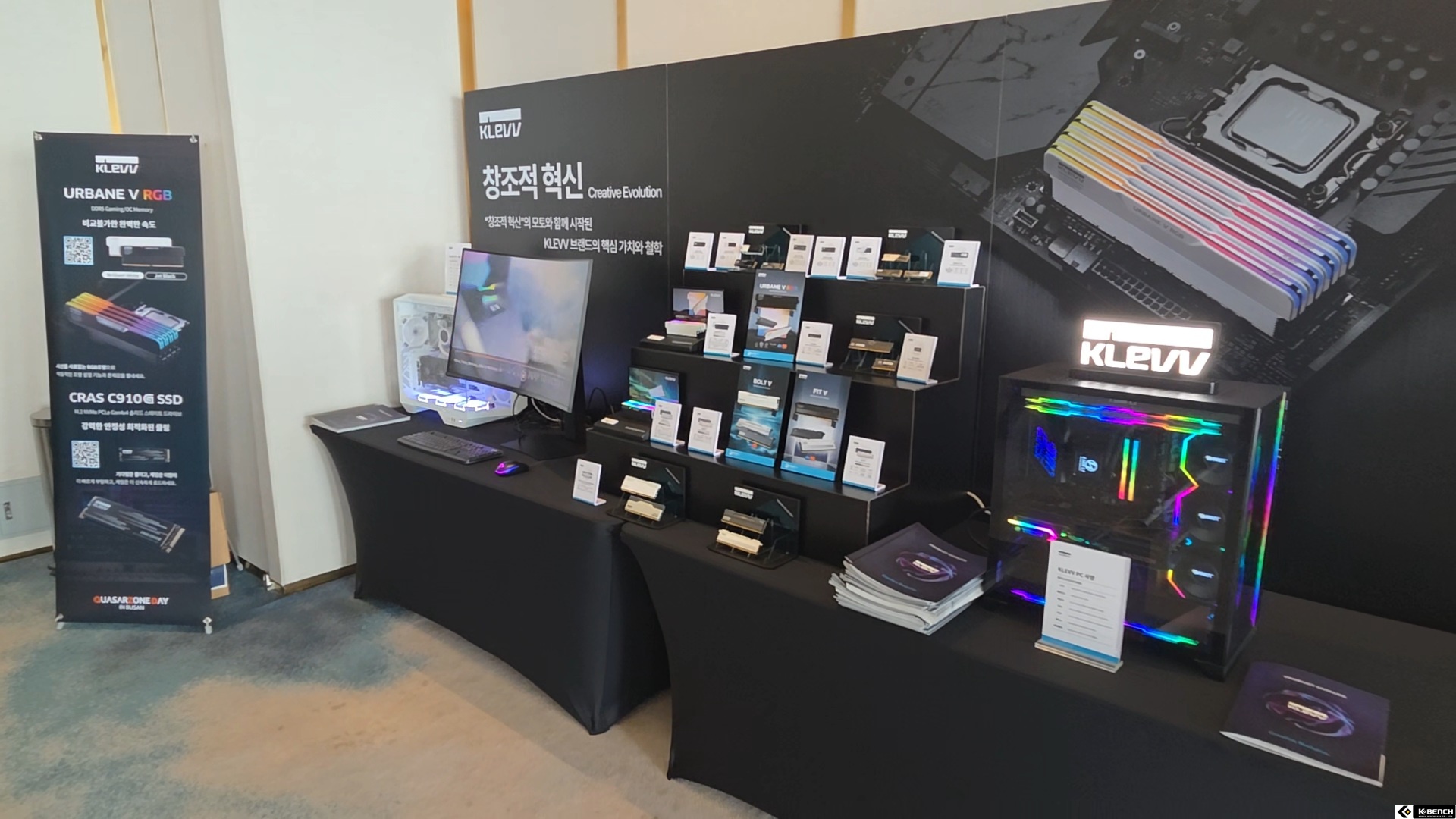 행사장 입구 바로 왼편에는 클레브의 대표적인 메모리와 SSD, 그리고 이를 활용한 PC들이 꾸며져있는 모습을 볼 수 있다.