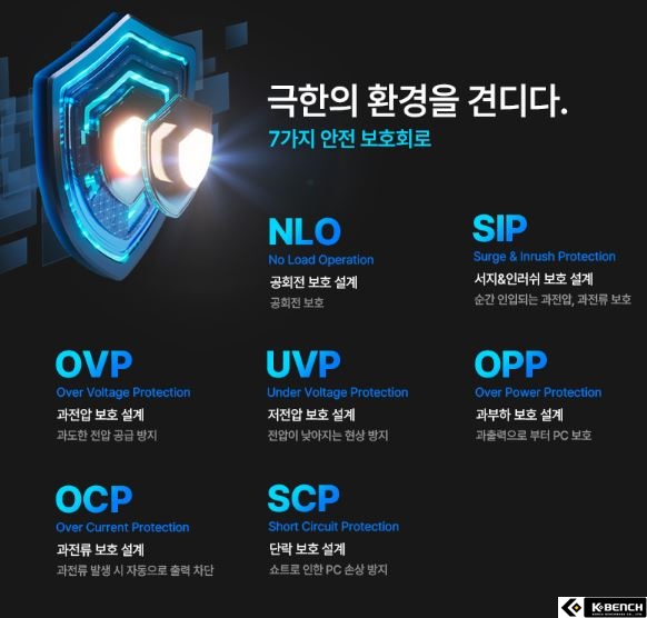 여기에 SCP/OVP/OPP/OCP/NLO/SIP 등 7중 보호회로가 더해져 다양한 변수에 대한 안전성도 충분히 확보되어 있다.