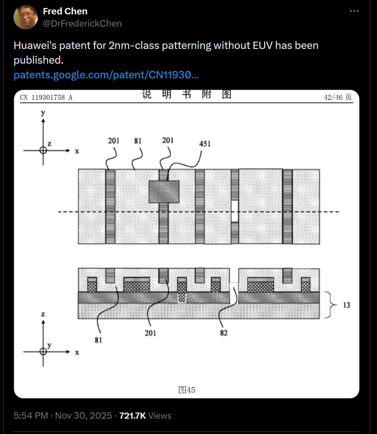 외신은 1일(현지시간), 반도체 연구원 프레데릭 첸 박사가 소셜 미디어를 통해 해당 특허를 공개하며 이 같은 내용을 전했다고 보도했다. 이 특허는 2022년에 출원됐으며 최근 공개된 것으로 알려졌다.