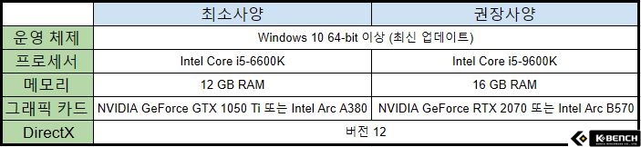 다만, 장르 특성상 더 많은 코어와 스레드를 제공받으면 더욱 쾌적한 환경을 제공 받을 수 있는 만큼, 보다 여유를 위해 인텔 코어 울트라 7 265K를 추천하며, 실제로 인텔 코어 울트라 7 265K를 활용해 간단한 프레임 테스트도 진행해 보았다.