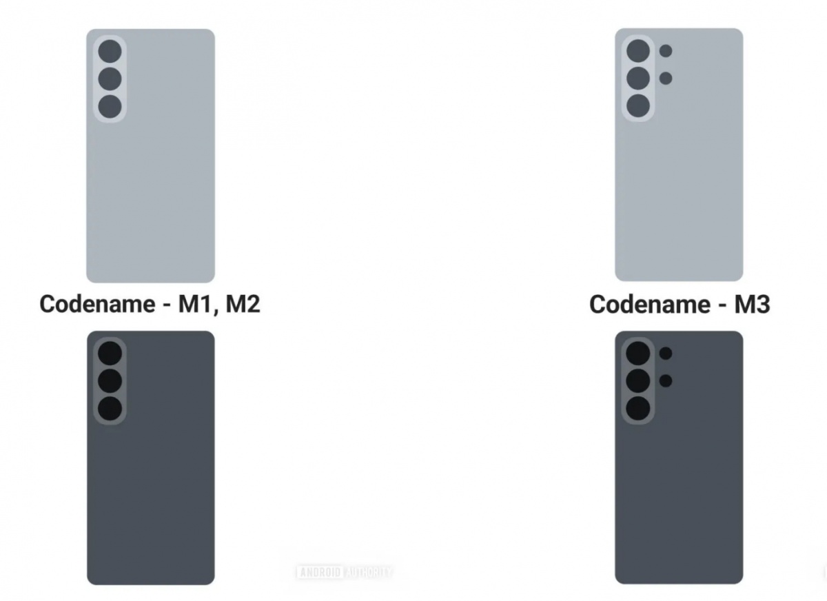갤럭시 S26과 S26+는 각각 M1, M2라는 코드명을 사용한다. 두 모델은 세 개의 후면 카메라를 수직 배열된 카메라 아일랜드 안에 배치한 구조로, 카메라 아일랜드 형태를 제외하면 전작과 유사한 디자인을 유지한다.