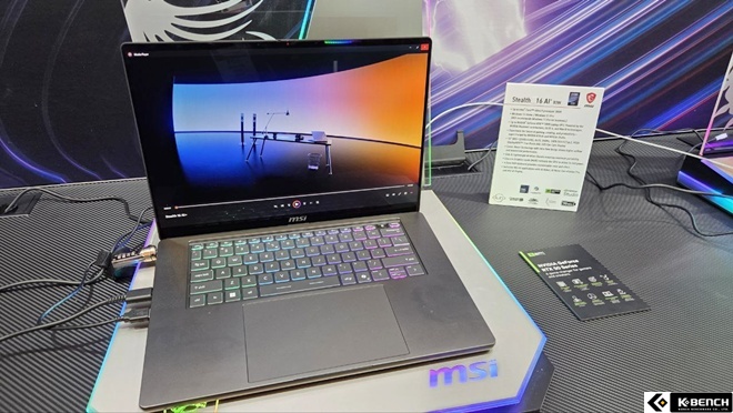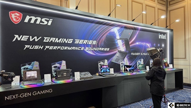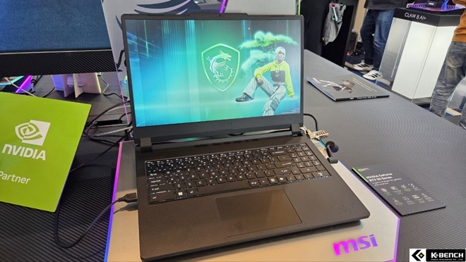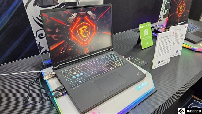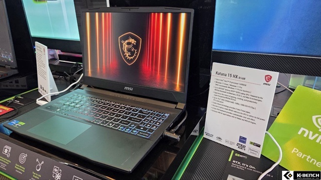 MSI 소드 GF66 HX B14W 노트북도 전시되어 있었는데, 옵션에 따라 최대 인텔® 코어™ i9 14900HX 프로세서도 탑재되며 RTX 5070 랩탑 GPU를 지원하는 고성능 노트북이다.
