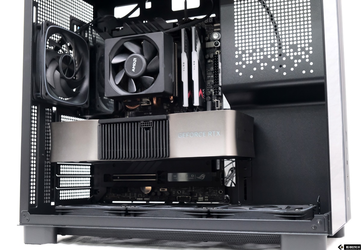 한편 그래픽카드용 지지대가 기본으로 내부에 설치돼 있다는 점도 실용적인 구성이다. RTX 4090급 대형 그래픽카드를 장착하더라도 별도의 지지대를 추가로 구매할 필요가 없고, 장착 후 처짐에 대한 부담도 줄어든다. 대형 그래픽카드를 전제로 한 내부 공간 설계와 기본 지지대 제공까지 더해져, 고사양 시스템 구성에 대한 준비가 비교적 깔끔하게 갖춰진 케이스라고 정리할 수 있다.