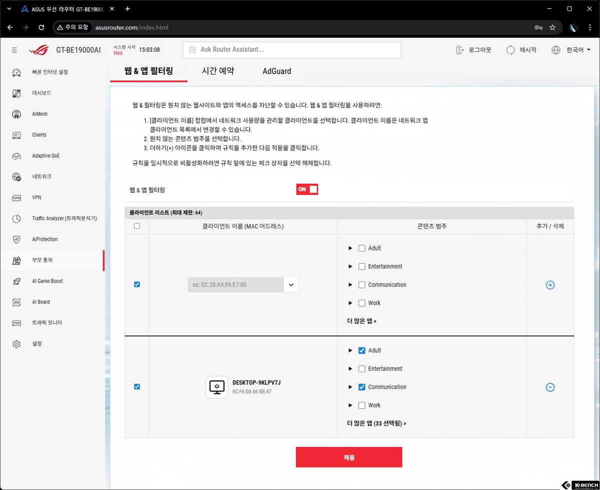 보안 측면에서는 AI 보호 기능을 통해 다양한 위협으로부터 네트워크를 보호하며, 광고 차단과 개인정보 추적 방지 기능도 함께 제공된다. 여기에 자녀 보호 기능을 활용하면 유해 사이트나 성인 콘텐츠 접근을 차단할 수 있고, 사용 시간을 지정해 장시간 노출을 제한하는 관리도 가능하다.
