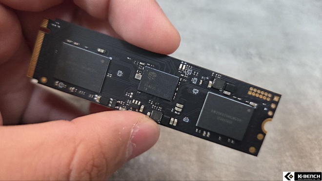 제품을 실제로 살펴보면, 낸드 구성은 QLC 기반 구조를 채택하고 있는 것을 볼 수 있으며 DRAM 캐시는 별도로 탑재되지 않은 DRAM-less 설계다. 대신 Host Memory Buffer(HMB) 기술을 활용해 시스템 메모리를 일부 캐시 영역으로 활용하는 구조를 적용했다.