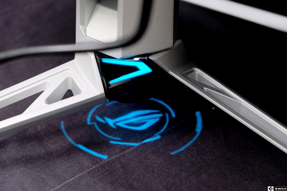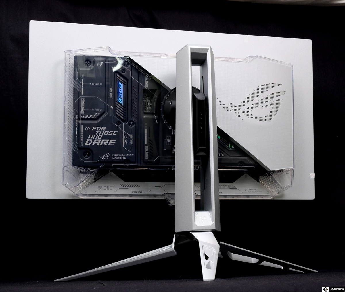 이 투명 구조가 만들어내는 인상은 전체 디자인 톤까지 끌어간다. 단정하고 정리된 외형 위에, 기계적인 구조미가 자연스럽게 섞이면서 단순한 게이밍 모니터가 아니라 하이엔드 전자기기 같은 이미지가 형성된다. 책상 위에 올려두면 모니터라기보다 하나의 장비, 하나의 시스템 파츠처럼 보이는 이유다.