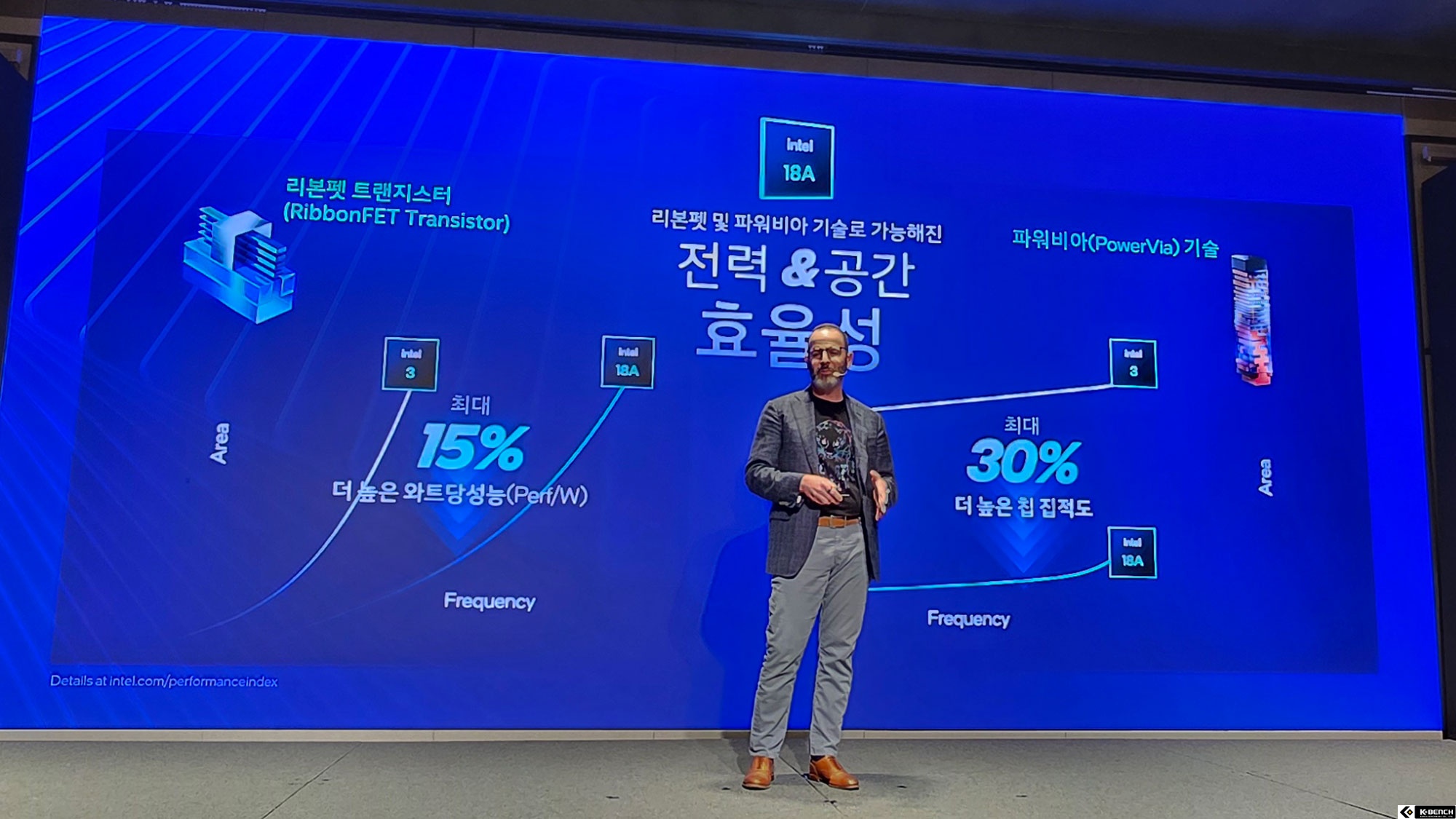 조쉬 뉴먼(Josh Newman) 인텔 클라이언트 컴퓨팅 그룹 부사장은 "18A 공정 도입을 통해 전력 대 성능비를 15% 향상시키고 칩 집적도를 30% 개선했다"고 설명했다. 이러한 공정 혁신을 바탕으로 P-코어(Performance-core)와 E-코어(Efficient-core) 또한 전면 재설계되었다. 특히 저전력 아일랜드(Low Power Island)에 배치된 E-코어는 자체 캐시를 탑재하여 웹 브라우징이나 화상 회의 같은 일상적인 작업을 매우 낮은 전력으로 처리할 수 있게 돕는다. 뉴먼 부사장은 "이제 배터리 수명을 '시간' 단위가 아닌 '일(day)' 단위로 이야기할 수 있게 되었다"며 전력 효율성에 대한 강한 자신감을 내비쳤다.