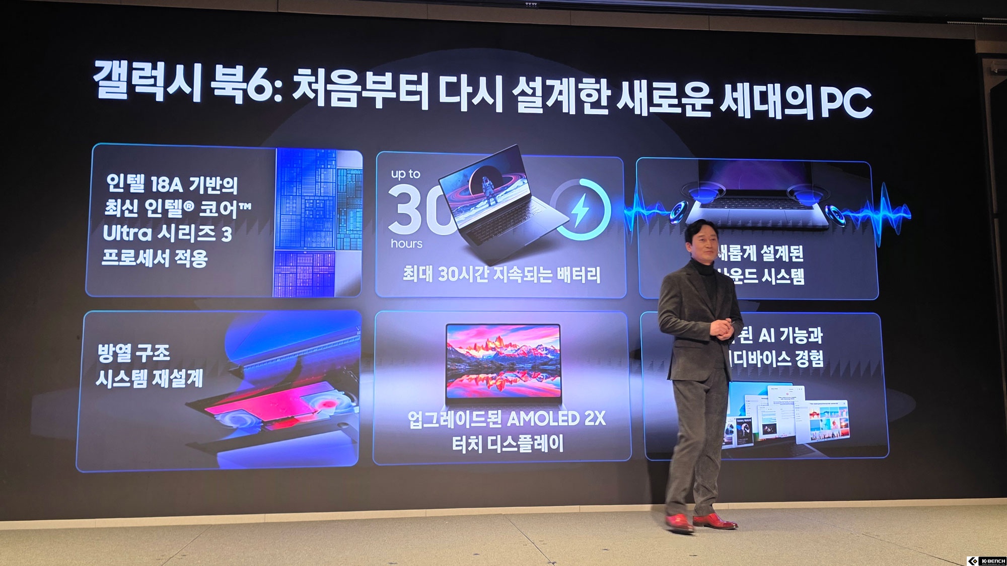 삼성전자는 퍼포먼스와 기본기에 집중한 '갤럭시 북6' 시리즈를 공개했다. 이민철 삼성전자 MX사업부 부사장은 "인텔의 신규 플랫폼 성능을 극대화하기 위해 방열 시스템을 전면 재설계했다"며, "기존 울트라 모델에만 적용되던 베이퍼 챔버를 프로 시리즈까지 확대 적용하고, 배터리 효율을 개선하여 최대 30시간 사용이 가능한 환경을 구현했다"고 설명했다.