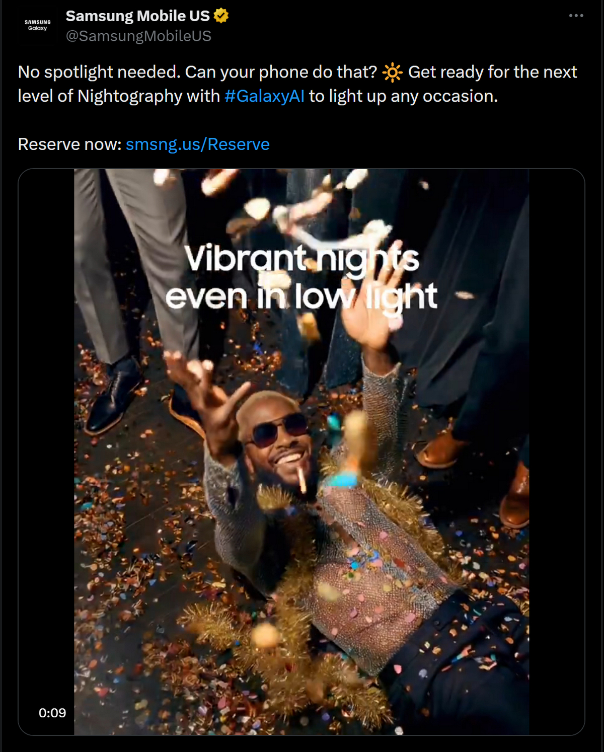 이번 티저는 삼성의 저조도 촬영 기술인 ‘나이트그래피(Nightography)’ 기능에 초점을 맞춘 것이 특징이다. 영상에서는 어둡고 노출이 부족한 장면이 보다 밝고 선명한 화면으로 전환되는 모습을 대비해 보여주며, 저조도 환경에서의 카메라 성능 향상을 강조했다.