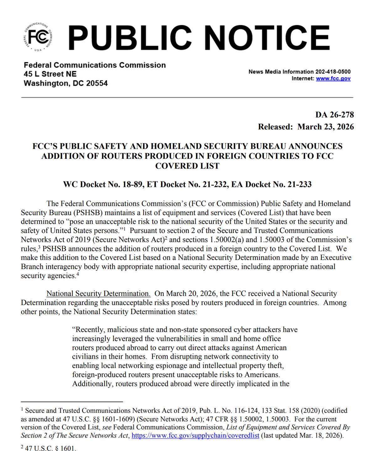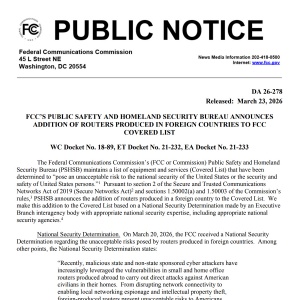 미국 연방통신위원회(FCC)가 국가 안보와 사이버 보안 위협을 이유로 미국 외 지역에서 제조된 모든 소비자용 와이파이 공유기(라우터)의 신규 수입 및 승인을 전면 금지한다고 발표했다.