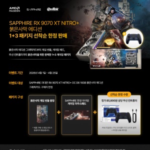 이번 프로모션은 ‘SAPPHIRE 라데온 RX 9070 XT NITRO+ OC D6 16GB 붉은사막 에디션’ 구매 고객을 대상으로 ▲붉은사막 게임 코드 ▲PS5 듀얼센스 무선 컨트롤러(PC용 USB 케이블 포함) ▲SAPPHIRE 게이밍 마우스패드를 제공하는 1+3 번들 패키지로 구성된다.
