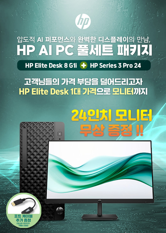HP 공식 노모아솔루션 , 최신 인텔 탑재 ‘HP 엘리트데스크 8 Tower G1i’ 모니터 결합 프로모션 실시